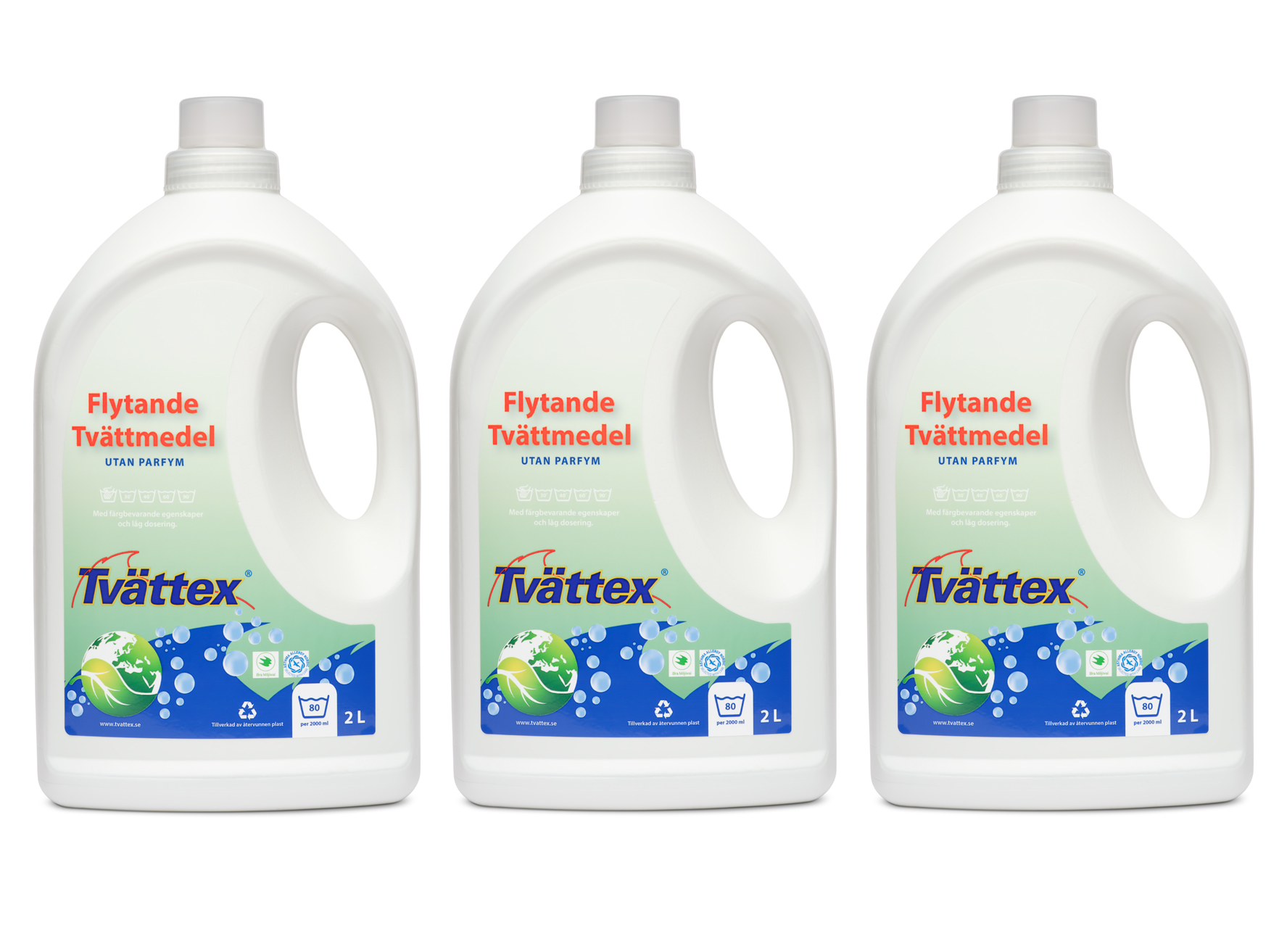 Flytande tvättmedel utan parfym med hög tvättkraft. Innehåller 3 förpackningar á 2 liter och räcker till ca 240 st tvättar. Rekommenderas av Astma & Allergiförbundet! 200 kr går direkt till föreningen!